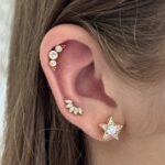 Auksiniai auskarai ar auksiniai auskarai su deimantais pirmojo vėrimo metu